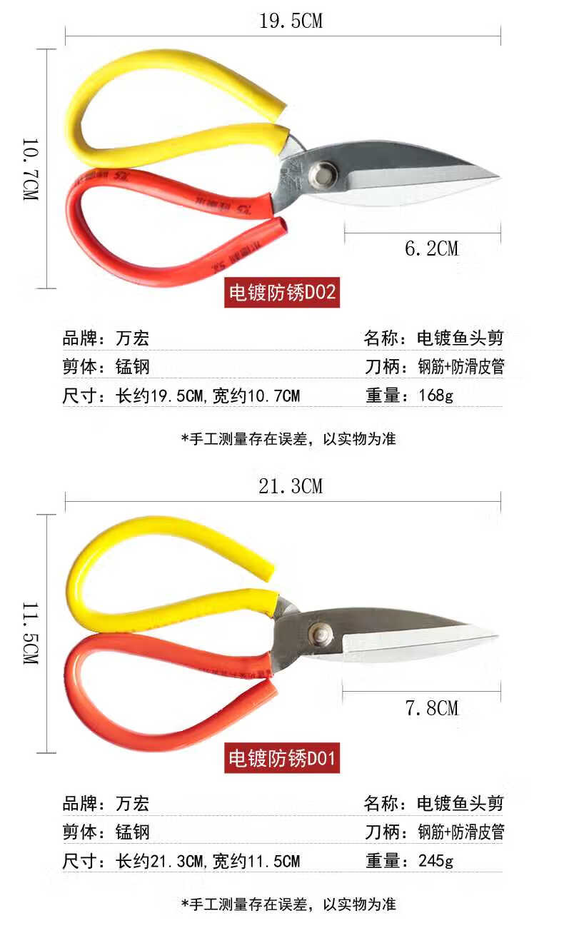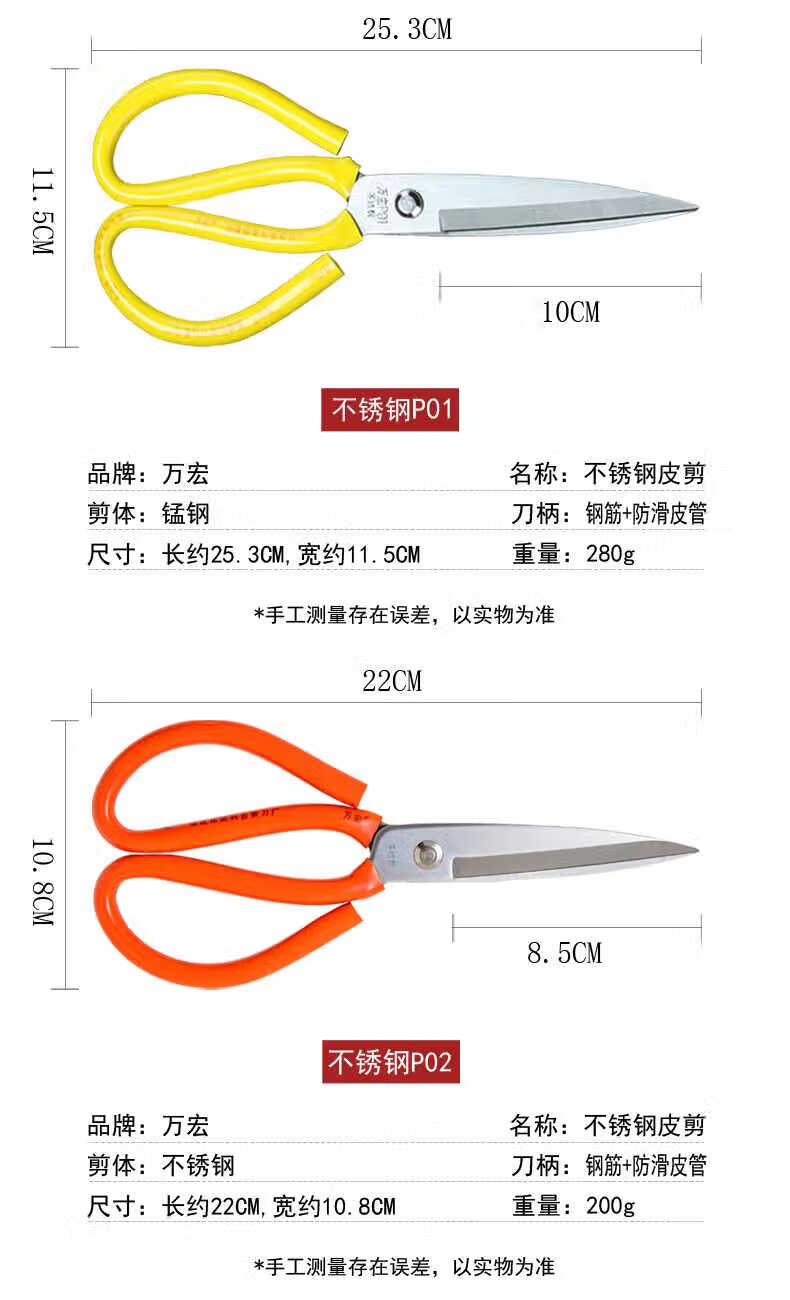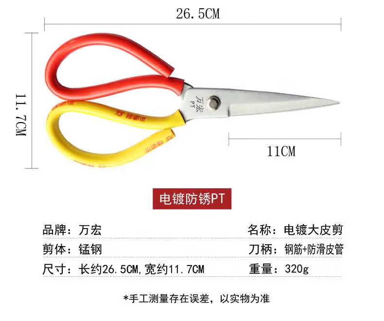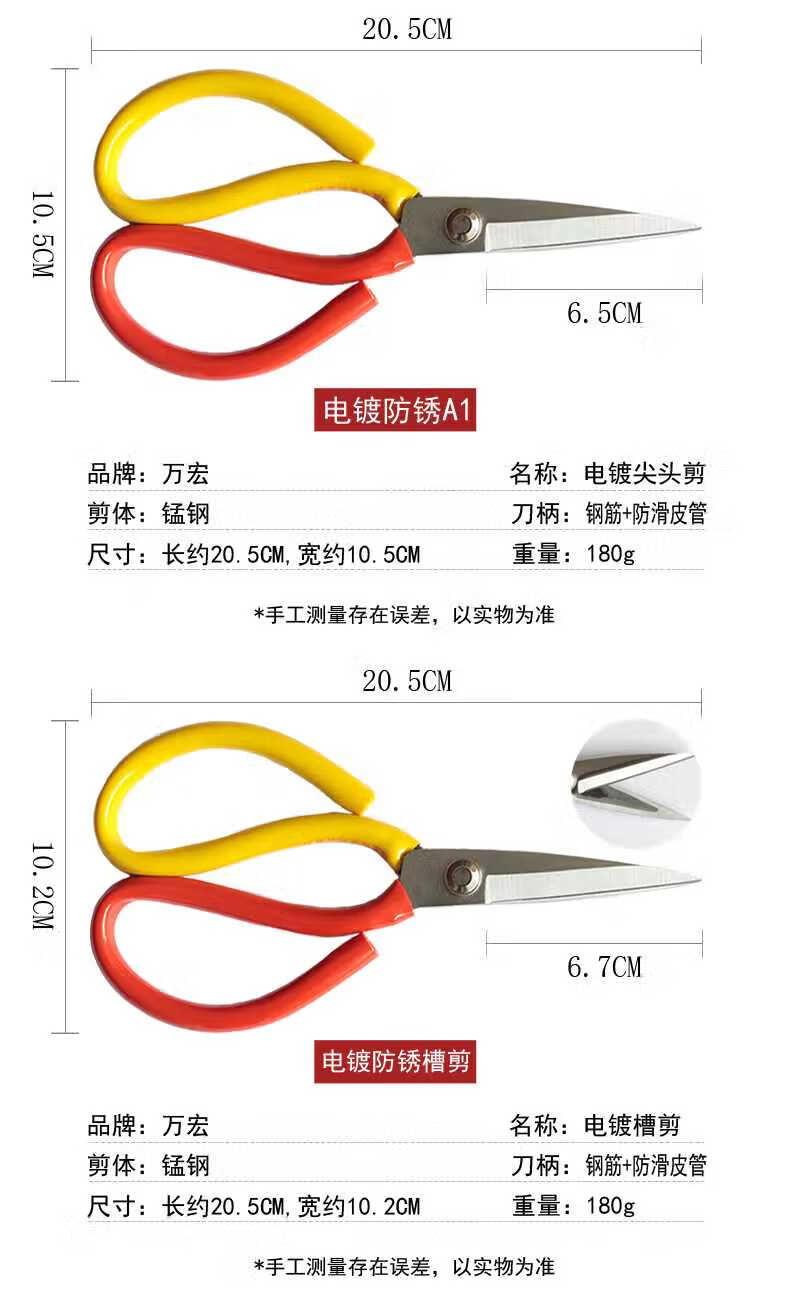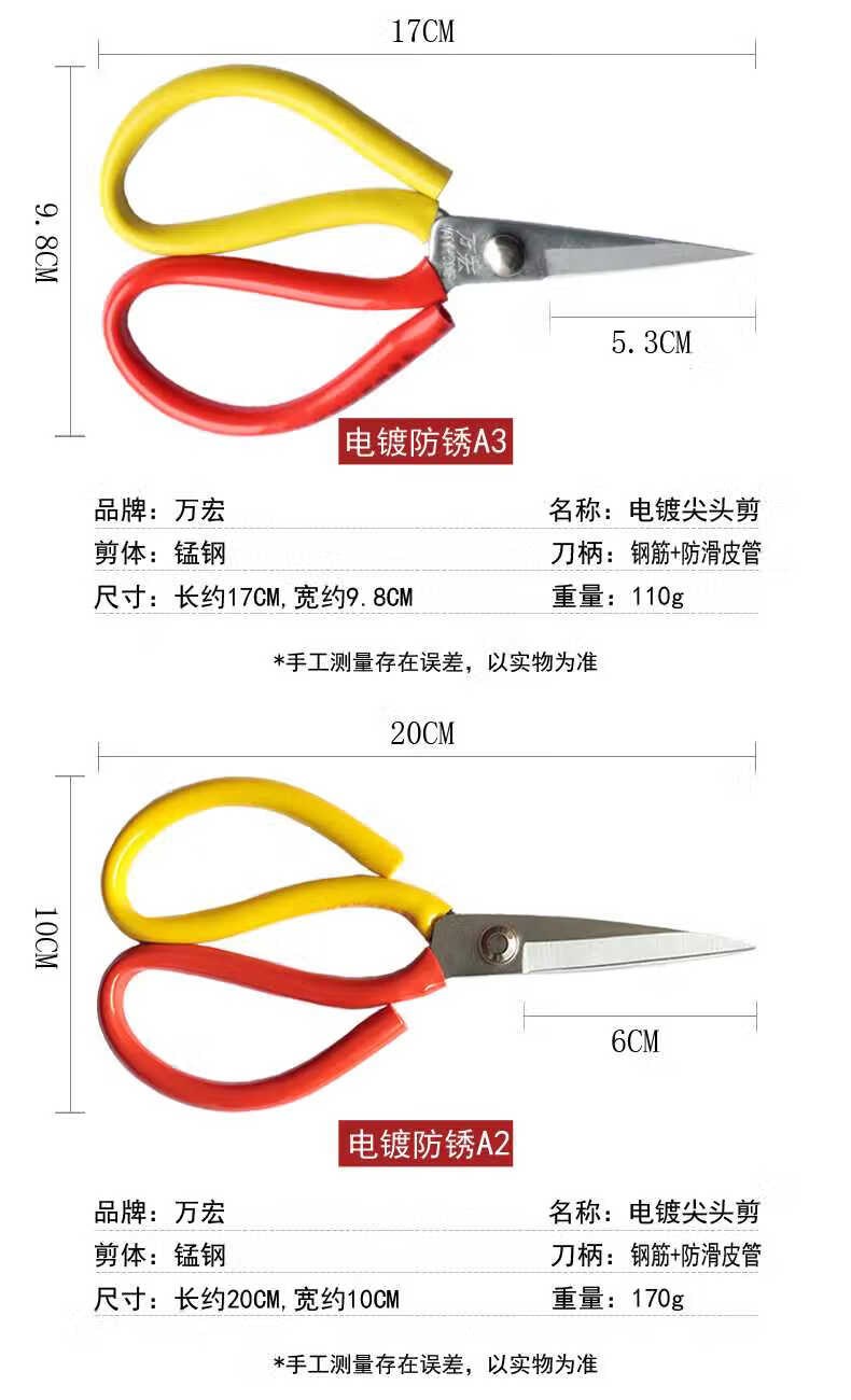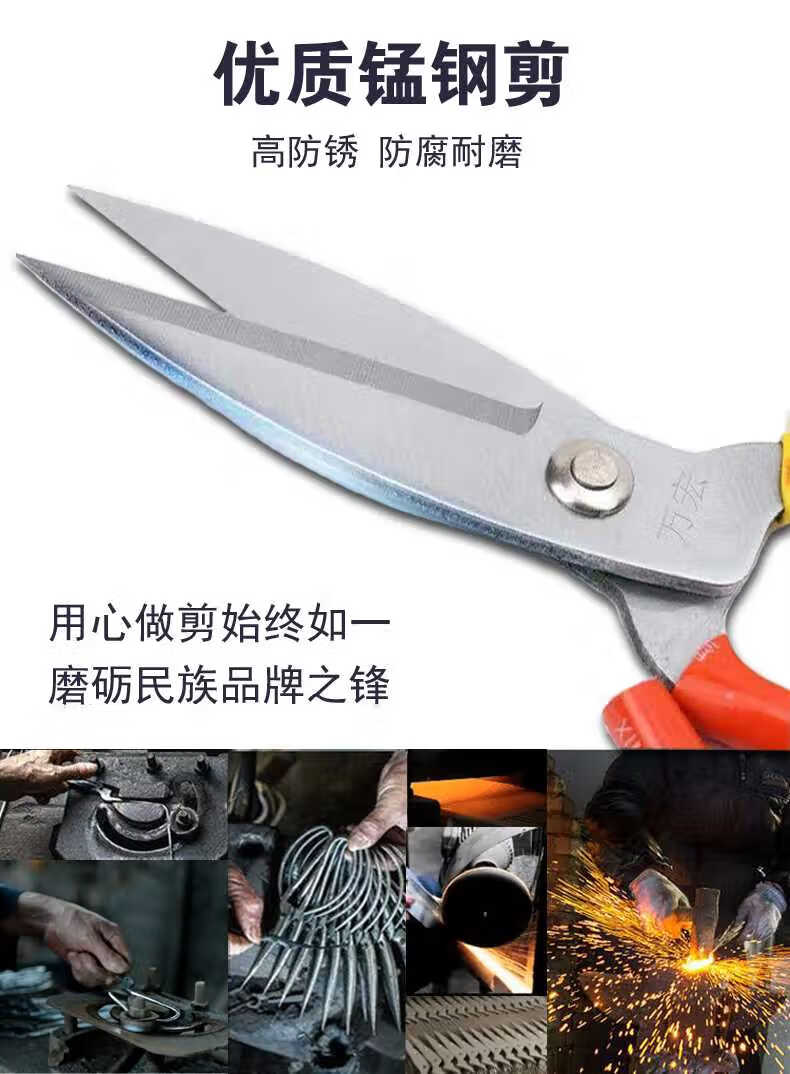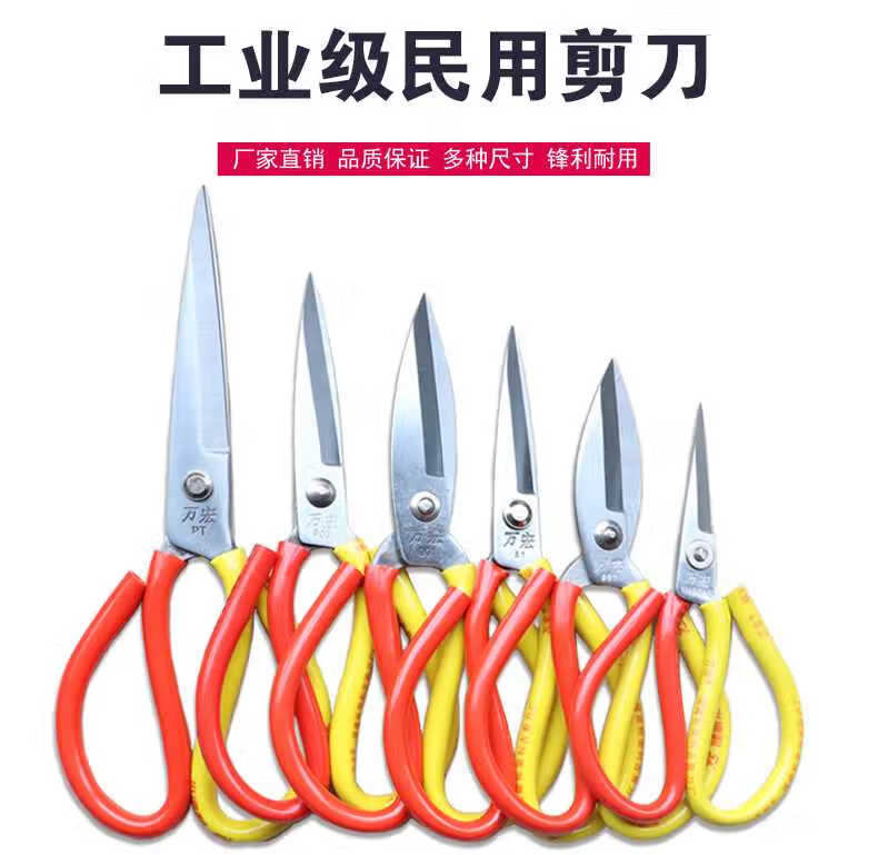 万宏家用剪刀防锈大头剪 D01 红黄手柄 20把/盒 180把/件(热卖)