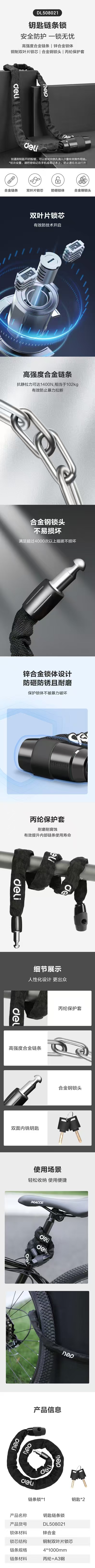 得力DL508021 钥匙链条锁(黑)4x1000mm(新V1) 10个/盒 60个/箱